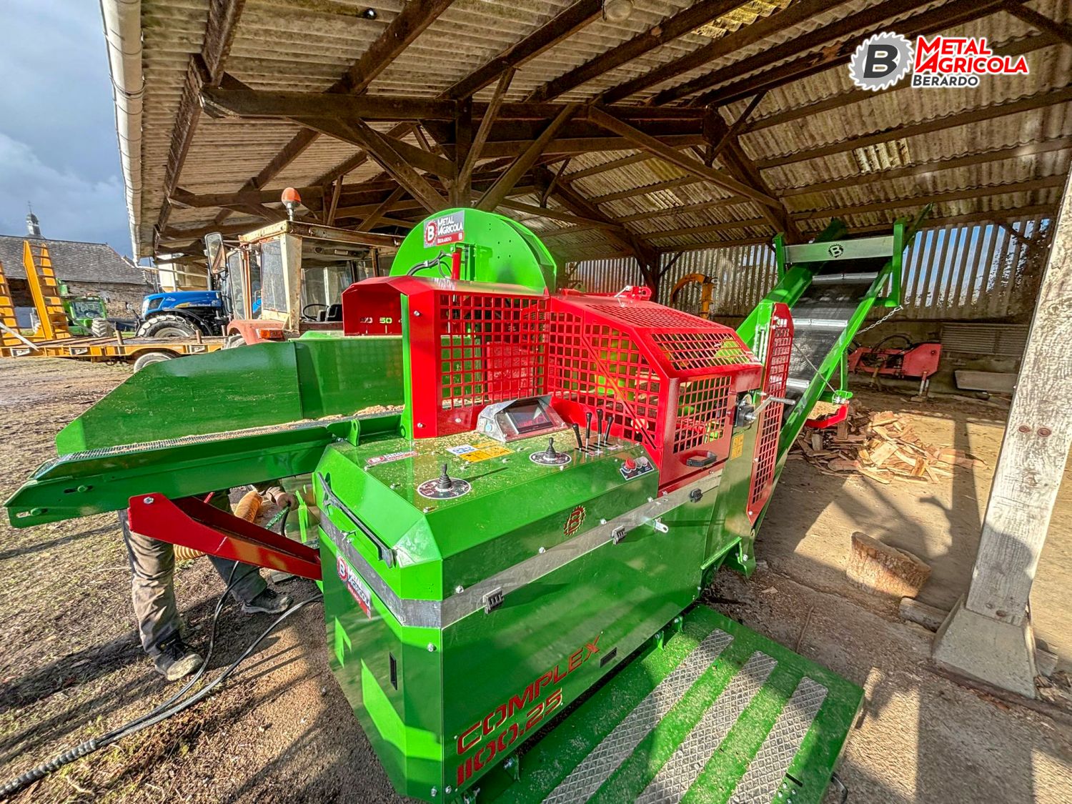 La Complex 1100 è una macchina semiautomatica/automatica progettata per operare con un solo operatore e dotata di spaccalegna incorporato. Pensata per chi ha grandi volumi di lavoro, offre produttività costante, gestione semplice e sicurezza totale, grazie alla combinazione di taglio a disco ad alta efficienza e gestione idraulica avanzata.